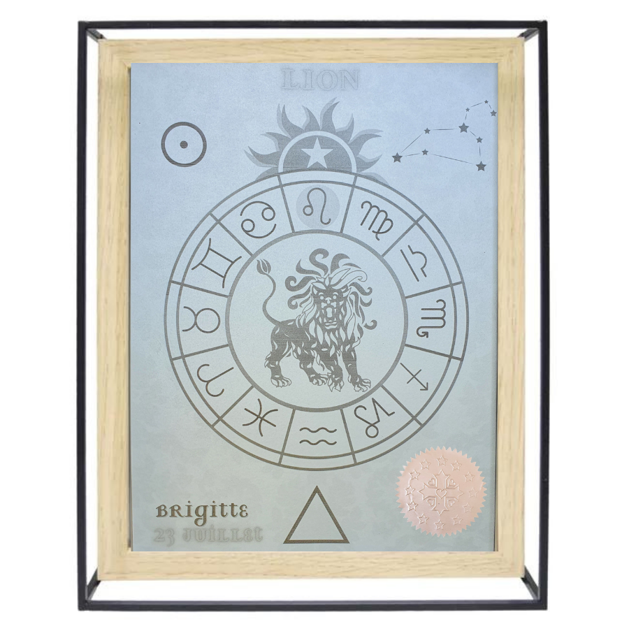 Cadre en bois et métal de 23 x 30 cm avec Visuel Lion (23 juillet au 23 août)
